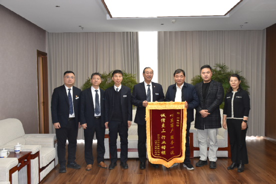 12月1日,河北绘储科技有限公司向我行赠送一面印有“心系客户 服务一流 诚信至上 行业楷模”的锦旗,对我行高效优质的金融服务表示感谢。行领导吕文联、王耀发、段伟申,河北绘储科技有限公司董事长刘运智,总经理刘海博等参加座谈。