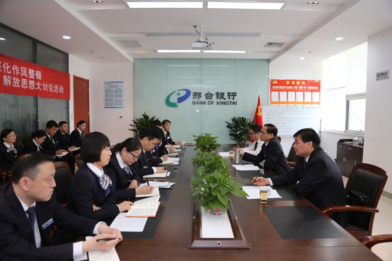 张克星一行首先来到保定银监分局,同该局领导进行了深入的沟通交流,听取并了解保定分行在稳健合规发展中的意见建议。在保定分行,张克星与分行相关负责人进行座谈。保定分行行长王林重点汇报了今年以来分行的经营指标、存贷款业务营销、客户拓展及下一步工作计划等情况。张克星认真听取工作汇报,并征求了与会人员关于进一步促进工作开展的有关建议。